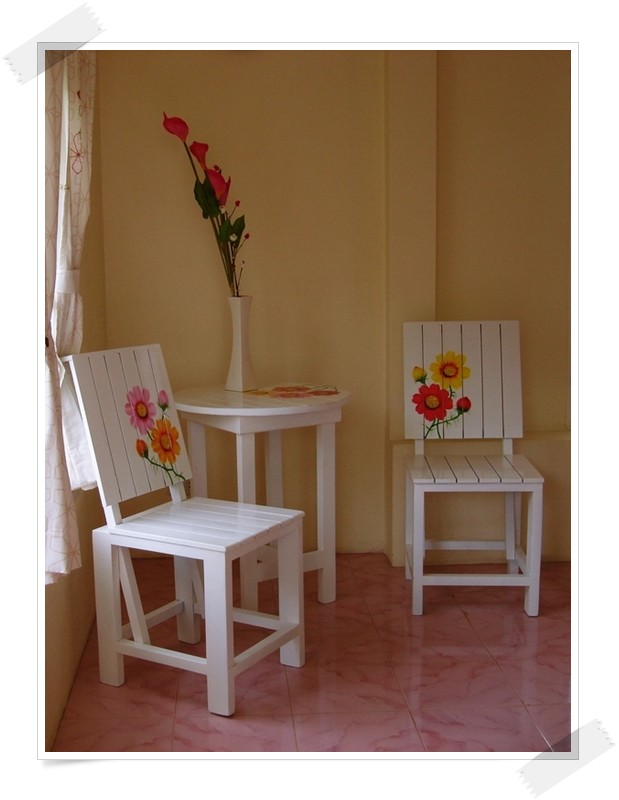 บ้านพักเดี่ยวในบรรยากาศสบายๆ หลังบ้านมีระเบียงนั่งเล่น พร้อมเก้าอี้เอนหลังแสนสบาย เพื่อนั่งชื่นชมบรรยากาศ และสวนดอกไม้ ลำธาร สายน้ำ และขุนเขา